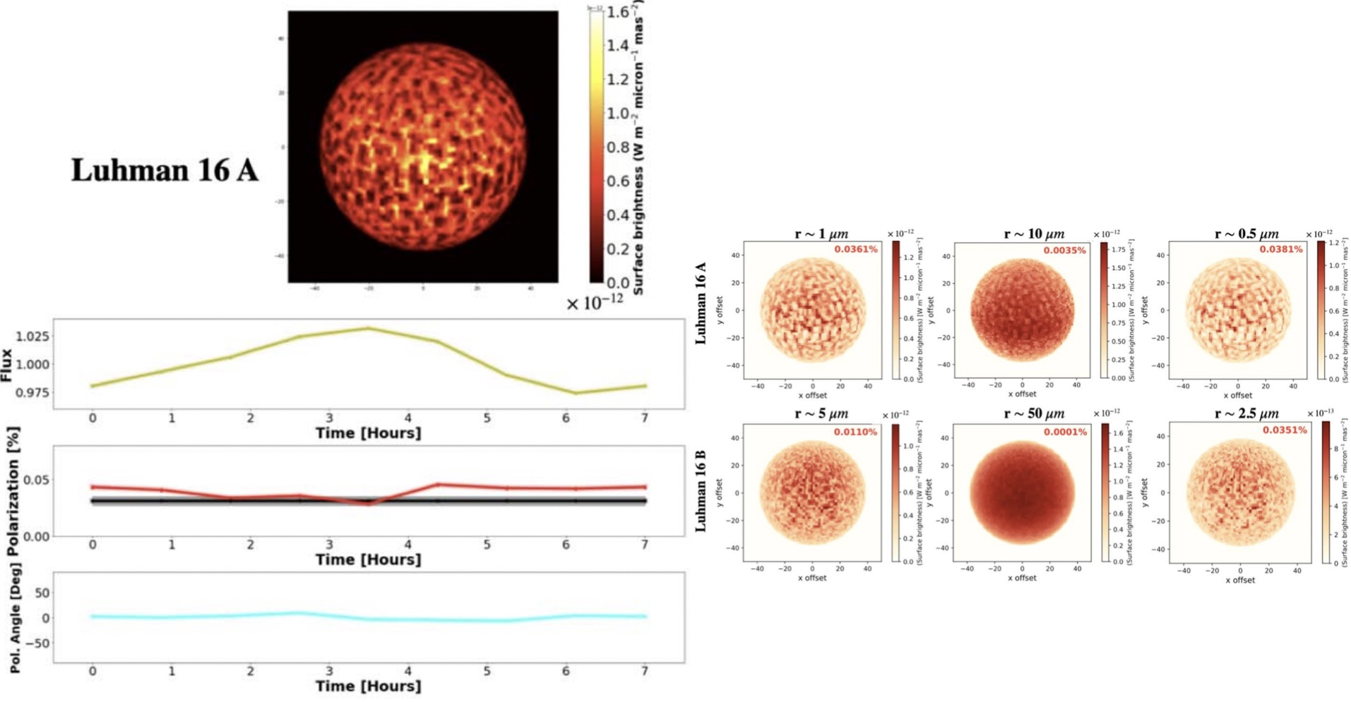 In Mukherjee et al. (2021), we showed that near-infrared polarimetry can help constrain 3D cloud structures in brown dwarfs by coupling general circulation models (GCMs) of the nearby binary Luhman 16 A and B with the 3D vector Monte-Carlo radiative-transfer code ARTES to predict disk-integrated polarization signals. The models reproduce the measured H-band linear polarization, yielding 0.038% for Luhman 16 A (vs. 0.031% ± 0.004%) and 0.011% for Luhman 16 B (vs. 0.010% ± 0.004%). The polarization strength is highly sensitive to cloud particle sizes, pointing to typical particles of ~0.5–1 μm for Luhman 16 A and ~5 μm for Luhman 16 B. Finally, we tested the common “cloud band” interpretation and found it systematically overpredicts polarization because it misses smaller-scale cloudy/clear vortices that reduce the disk-integrated signal, highlighting why fully 3D circulation patterns matter for interpreting polarimetry